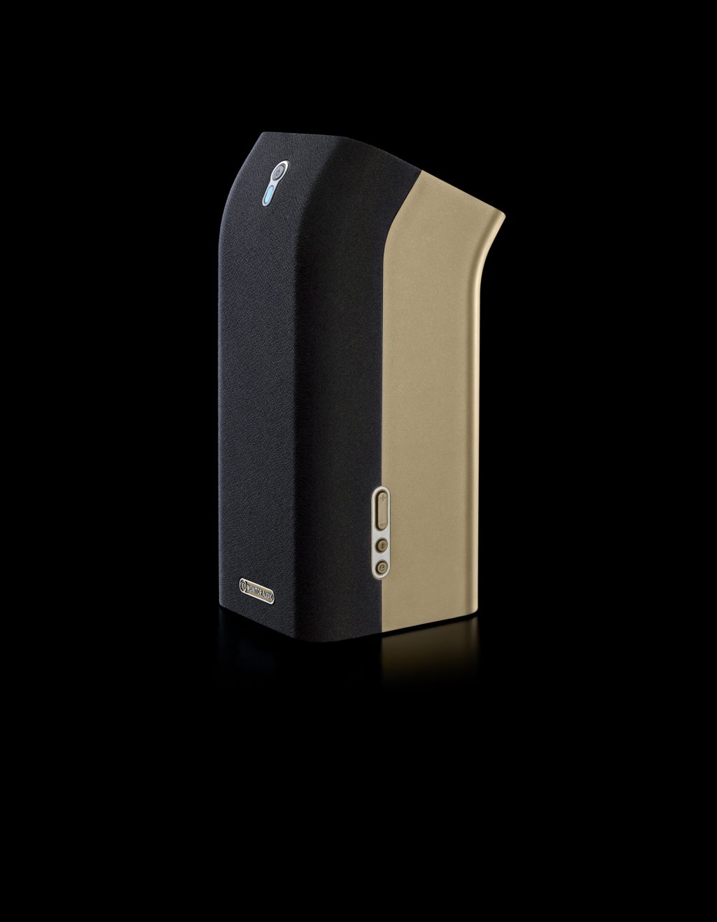 The compact S150 is constructed from a mineral-filled polymer for excellent rigidity and damping to form the ideal acoustic environment for the cluster of four specialised drivers, comprising a proprietary gold dome C-CAM® tweeter flanked on angled baffles by dual 3”-CAM metal cone bass drivers augmented by a rear-firing Auxiliary Bass Radiator (ABR). The C-CAM drivers are powered directly by dedicated Class D amplifiers, generating forty watts in total, which are fed by a high resolution DAC and optimised by intelligent digital processing to ensure the ideal balance of detail, dynamics and dispersion within Bluetooth range.