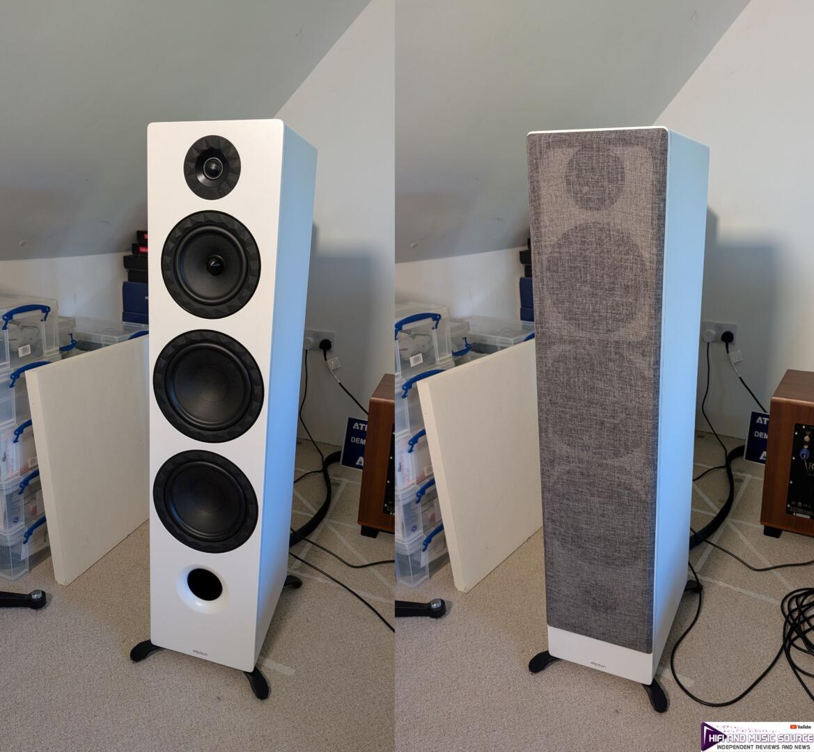 I’m a grille-off reviewer, but the fabric covers are delicate in a lighter shade of grey; the loudspeakers feel a bit softer with them. This is a fantasy, of course.