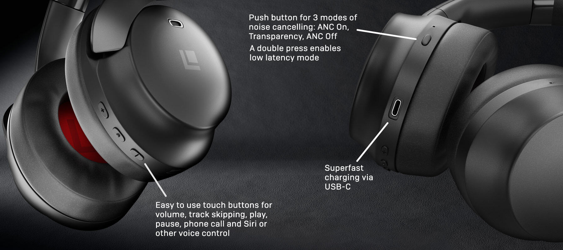 These Lindy BNXe are over-ear wireless noise-cancelling headphones. Their key feature is a lengthy 55-hour internal Lithium Polymer battery life (500 mAh) with a splash and dash 10-minute charge, giving you an extra 4 hours of use. The battery use with ANC on is an extremely impressive 32 hours. The Lindy BNXe is charged using the latest USB-C connector.