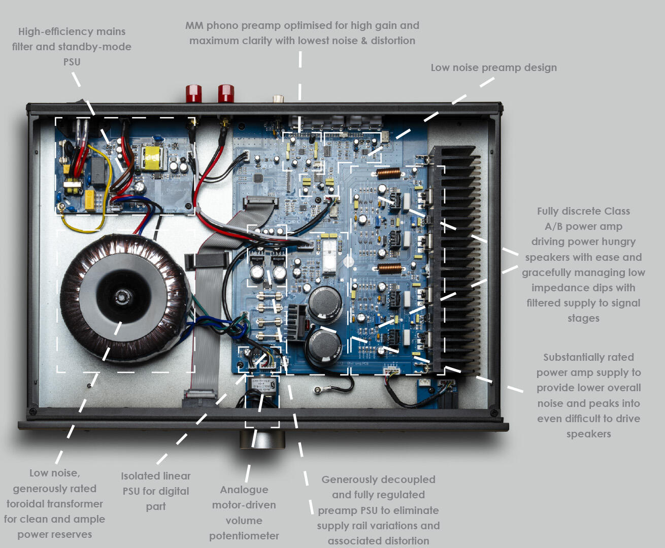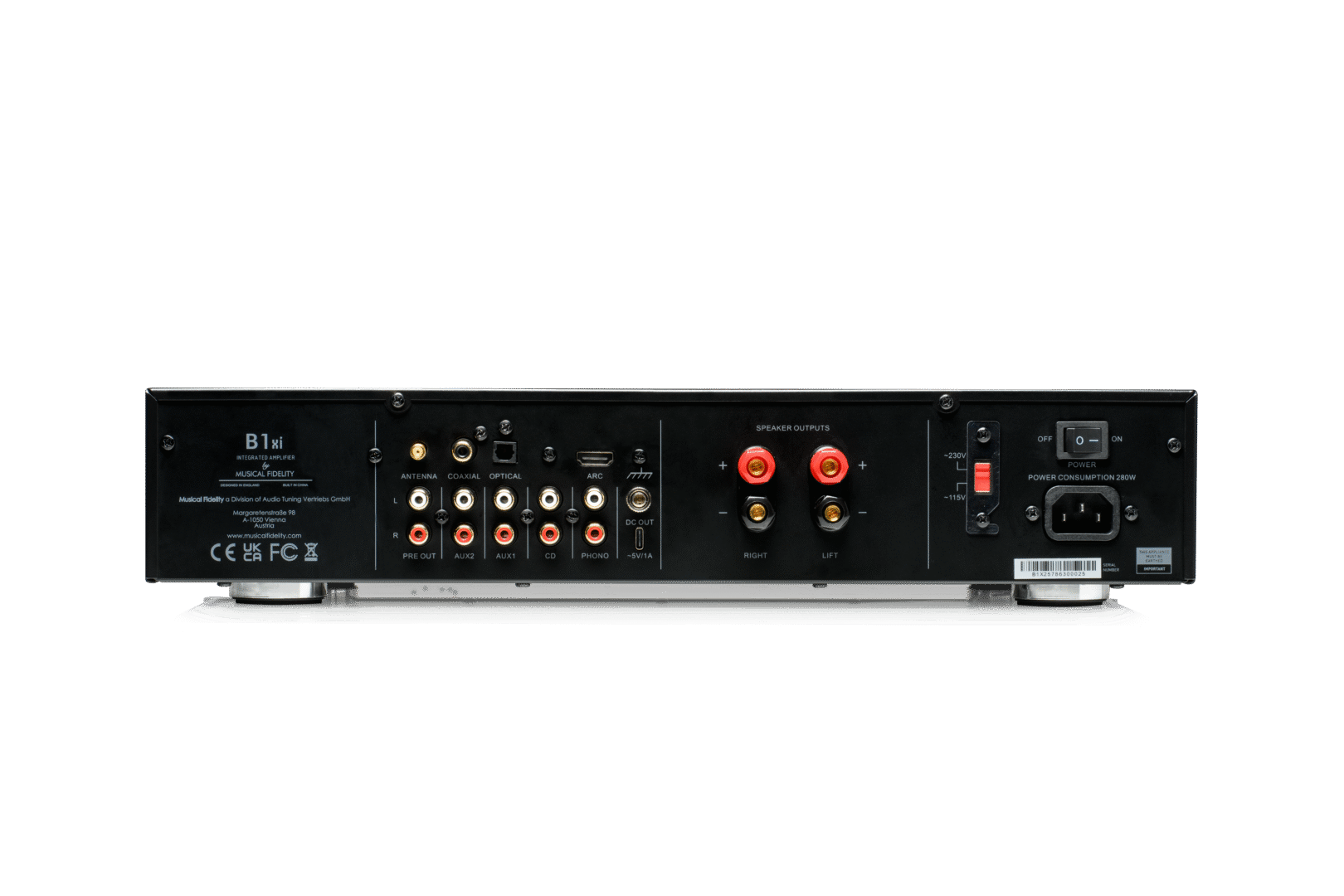 The preamplifier section of the Musical Fidelity B1xi features a dedicated linear power supply, ensuring a low-noise environment and optimal channel separation.