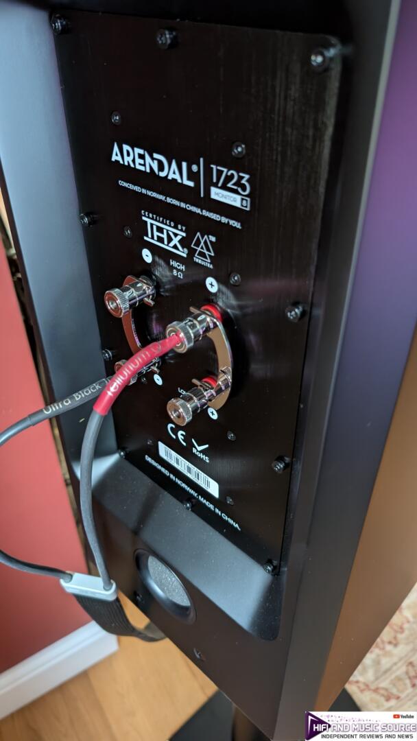 …. the copper binding post are beautiful with rhodium-plated speaker terminals that can take any cable configuration