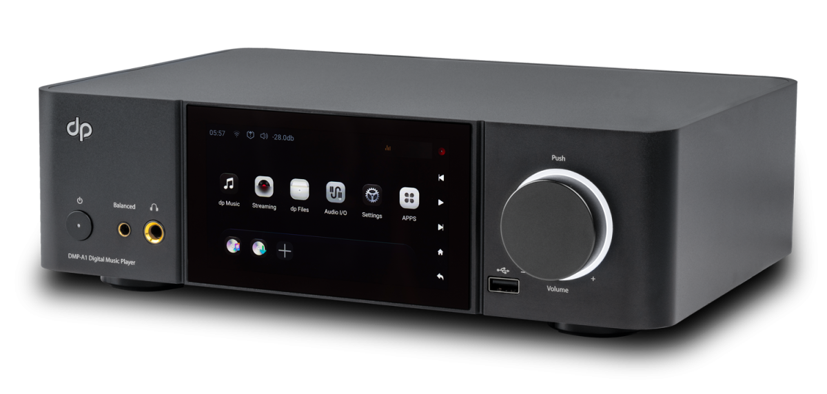 The DMP-A1 has a thick aluminium alloy high-precision CNC-machined chassis with rounded corners for strength. It features a 5-inch HD 1080p LCD colour touch display with a matching smart volume knob! The device offers screen mirroring with your smartphone. And yes, there are VU Meters built into the UI options!